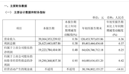 其中炒股配资官方网平台,2025年第三季度营收为390.64亿元,同比增长0.56%;归属于上市公司股东的净利润192.24亿元,同比增长0.48%。
